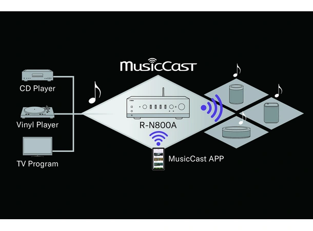 - R-N800A bruker samme DAC som R-N1000A, men uten HDMI ARC-inngang.